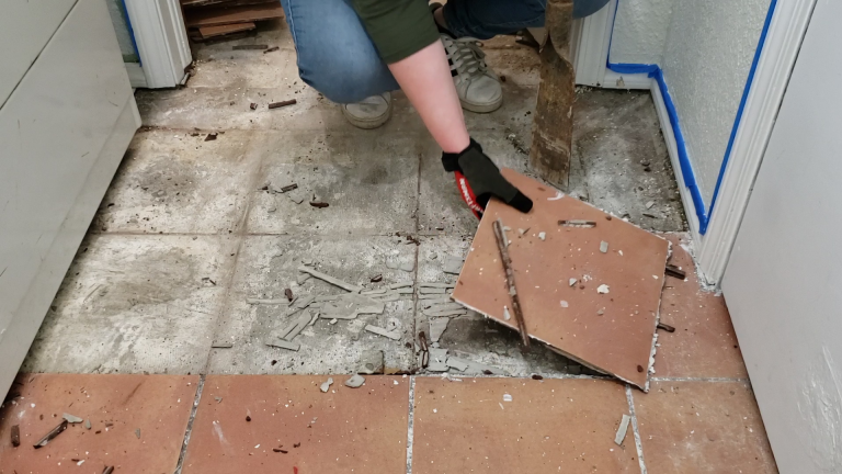 - إزالة البلاط بدون تكسير غير ضروري للجدران أو المواسير
