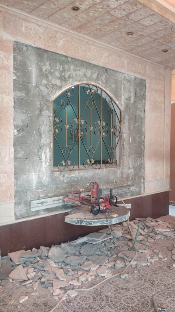 - تنفيذ الفتح: قص الجدار وفتح الدريشة بدقة مع الالتزام بأعلى معايير الأمان.